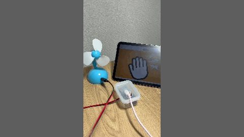 『たっち&びーぷ Connect』はタッチ以外にもきょろきょろ操作やもしもし操作に対応しているので、視線や声でも扇風機を回すことができます。