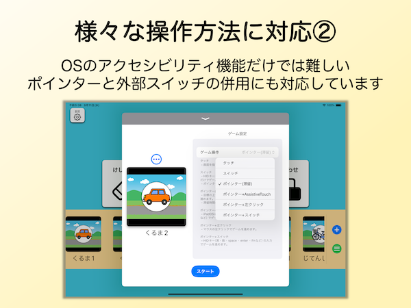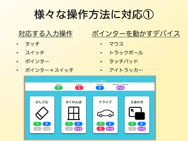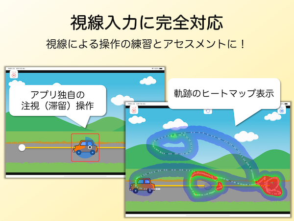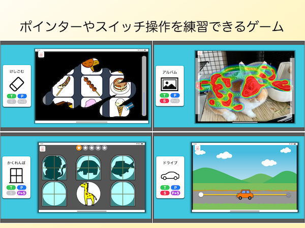 マウスポインターで遊べるiPadアプリです。視線入力にも対応しています。