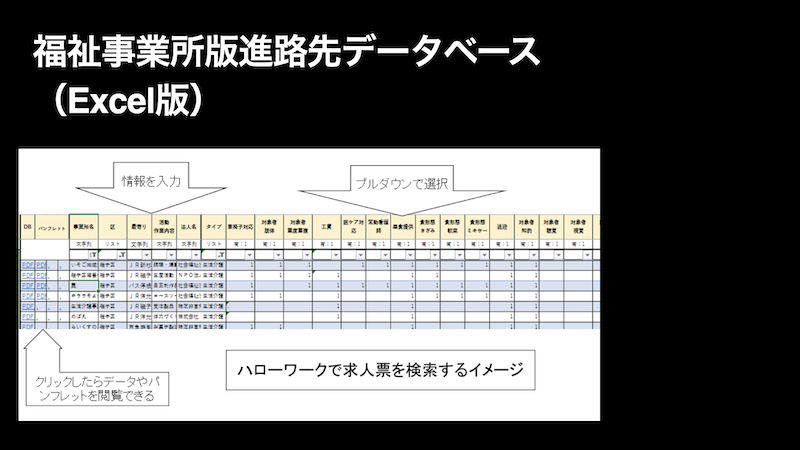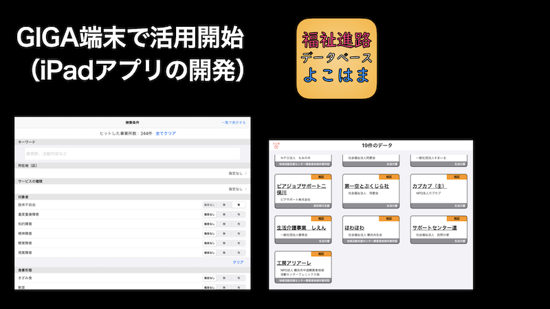 横浜市立特別支援学校の進路担当の先生と開発したデータベースアプリです。